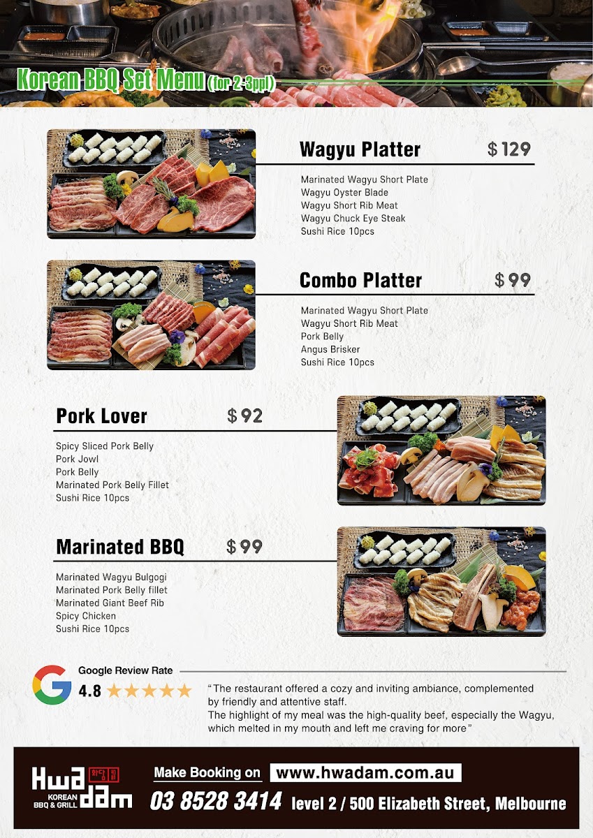 Welcome to Hwadam BBQ, a culinary gem nestled in Melbourne’s vibrant Elizabeth Street. Specializing in authentic Korean barbecue, Hwadam BBQ offers a delightful experience that blends fresh, high-quality meats with warm, attentive service.